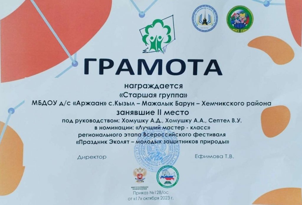 Приняв участие в фестивале наш детский сад «Аржаан» занял II место в номинации «Лучший мастер-класс»