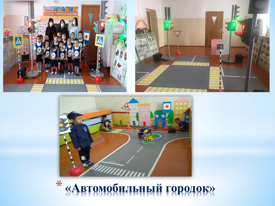 Для реализации программы по ППД в дошкольном учреждении создана предметно-развивающая среда, оборудован центр «Автомобильный городок» в котором имеются атрибутика центра: знаки дорожного движения, светофор, основные элементы одежды инспектора ДПС и атрибуты (фуражка, жилет, жезл). Центр «Автомобильный городок» расположен в холодное время года спальной комнате старшей группы, так как наше здание приспособленное, не имеем музыкального и спортивного зала. А в теплое время года пользуемся на улице. Огромную помощь при создании «Автомобильного центра» оказали родители, которые сделали дорожные знаки, приобрели машины и другие атрибуты.