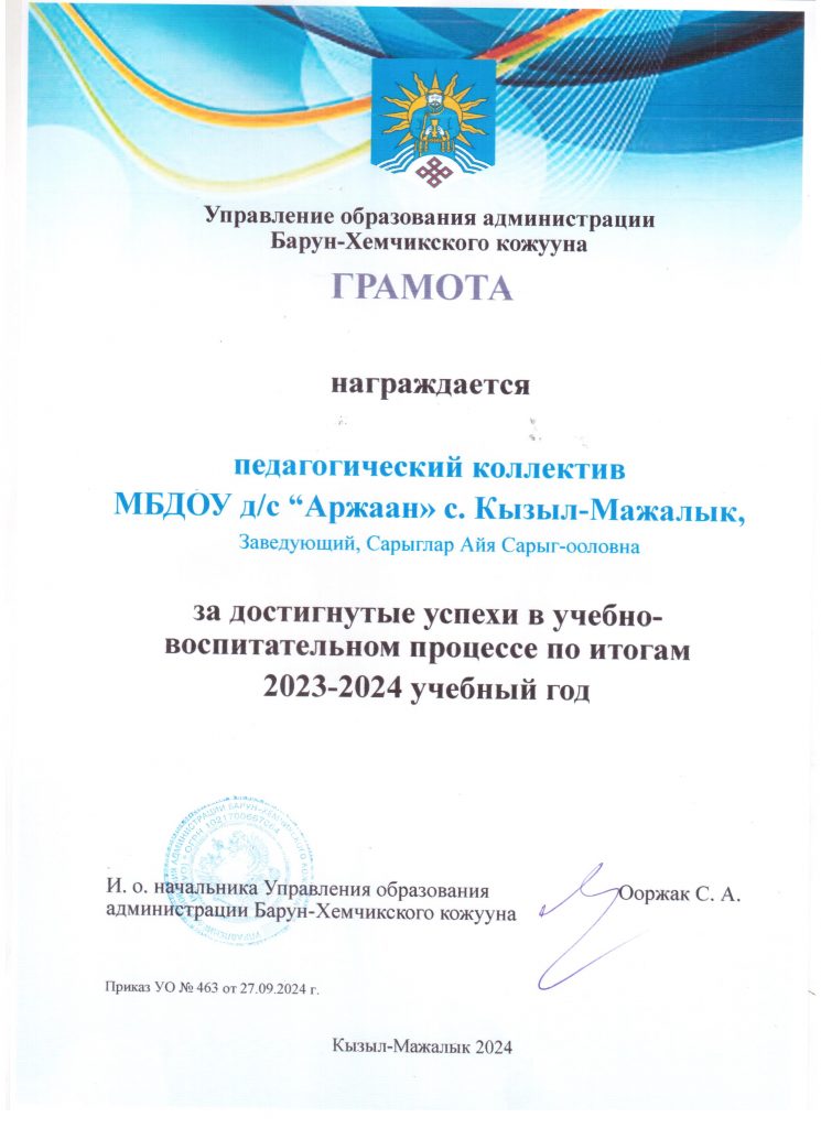 «Лучший ДОО Барун-Хемчикского кожууна — 2024»